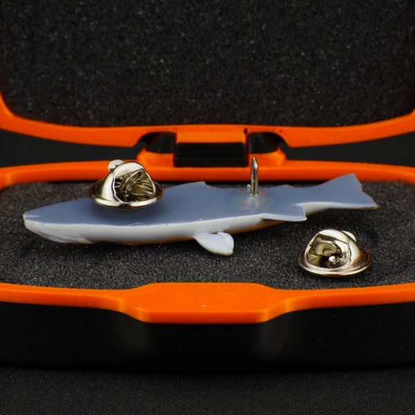 Значок кумжа выполнен в стиле реализм и его детализация потрясает воображение. Благодаря новым технологиям, мы смогли создать красивый значок и доступную цену.